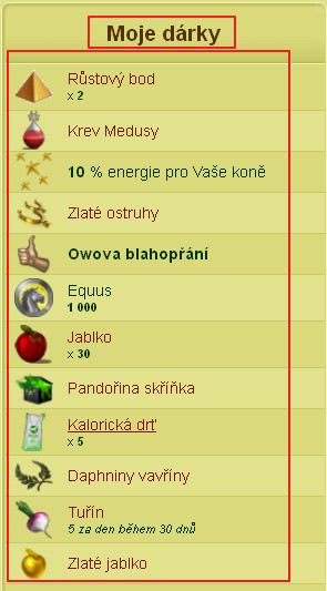 Na tu kliknete a výhry se vám zobrazí v tabulce Moje dárky.