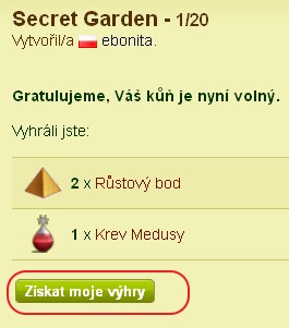 Když kliknete na klíč, pod výhrami se vám zobrazí ikonka získat moje výhry.