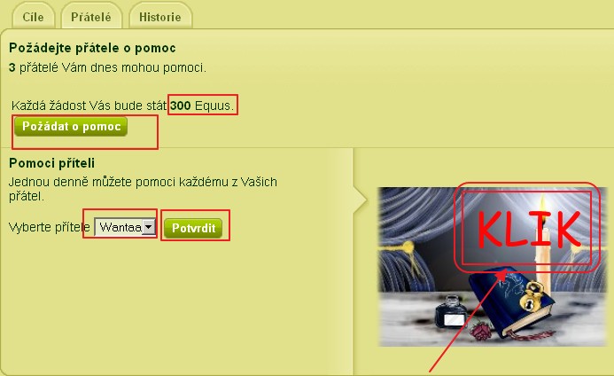 Přátelé vám můžou pomoci když je o to požádáte. Bude však stát 300 equus.